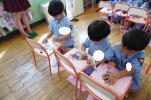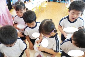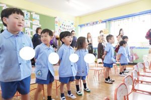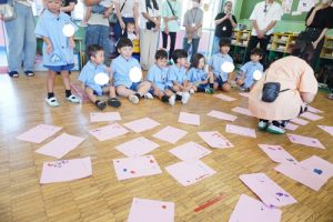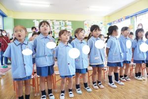 お当番さんはちょっと緊張気味でしたが、みんなで元気よく朝のご挨拶をしたり、季節の歌を歌ったりしているうちにいつものさくら組さんに戻ってきました