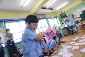 最後は、お家の人へカードをプレゼントし、見に来てくれた感謝の気持ちを込めて「ありがとうございました!」と伝えました
