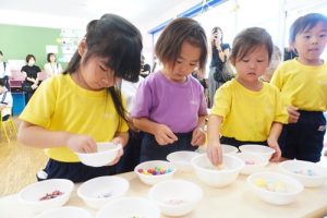 最後に、来てくださった保護者の方々に感謝の気持ちを伝えました!作ったセンサリーボトルは、後日持ち帰りますので是非お家でもたくさん遊んでください!