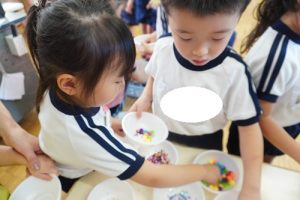 はじめはみんなで色水作りです!