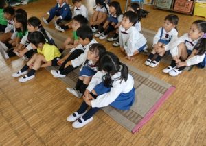 だんまり こおろぎの絵本では、耳をすますと音が鳴ることから子どもたちはとても興味津々に絵本の世界に入っていました