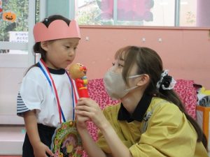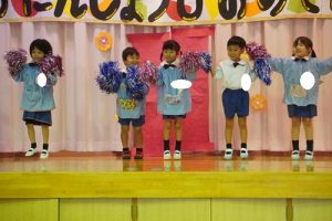 10月のお誕生日会を更に盛り上げるため、今回はさくら組さんが素敵な出し物をしてくれました