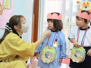 園長先生からのプレゼントを貰えて嬉しそうな子どもたち