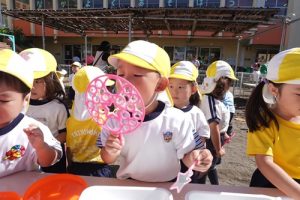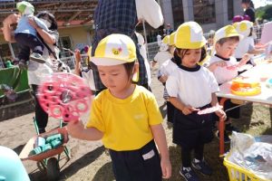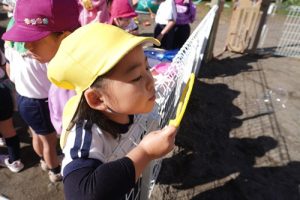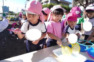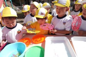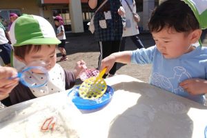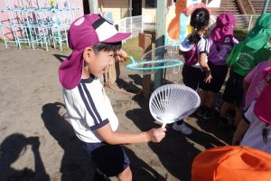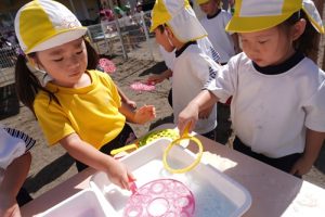 色々な種類のしゃぼん玉を作ってみようとする姿がありました