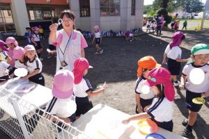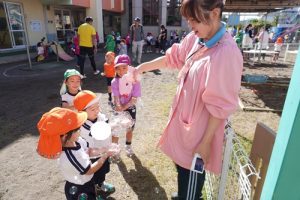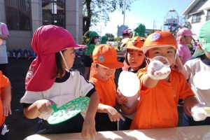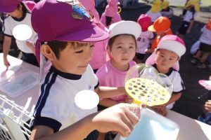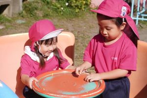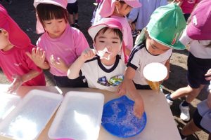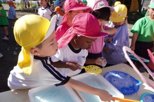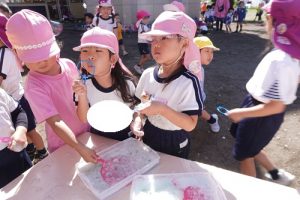 年長さんと年中さんが一緒にオシロイバナで色水ジュースをつくってみたり・・・