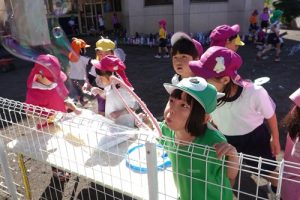 ショーに負けないくらいたくさんのしゃぼん玉が