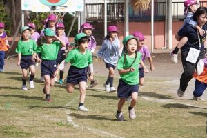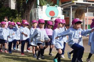 どの学年も、一生懸命走っていましたね!年中、年長は、バトンを繋いで勝利を目指して走る姿も素敵でした![]()