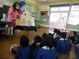 今日も、大型絵本・紙芝居・絵本の3つを用意してくださりました![]()