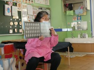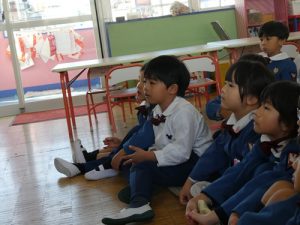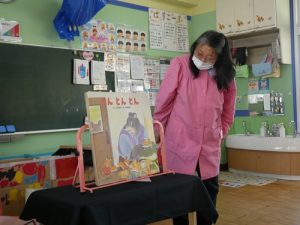 今日も、大型絵本・紙芝居・絵本の3つを用意してくださりました![]()