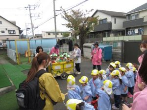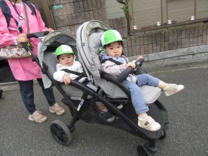 ちょうちょ組は誘導ロープを使って、みつばち組はカートやベビーカーに乗って「原宿第三公園」に行きました![]()