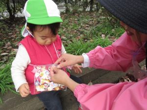 みつばち組はそれぞれで作った探検バッグを持って宝物探し![]()