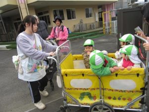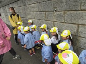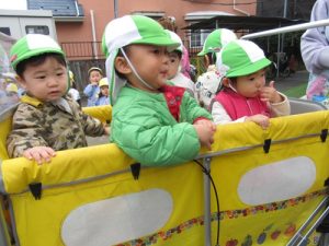 ちょうちょ組は誘導ロープを使って、みつばち組はカートやベビーカーに乗って「原宿第三公園」に行きました![]()