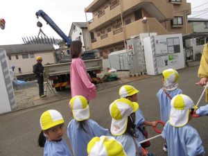 「車がいっぱい止まってるね~」と車屋さんを見つめていたり