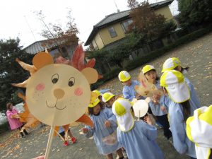 おやつを食べてからは、落ち葉を使ってライオン作り!!!