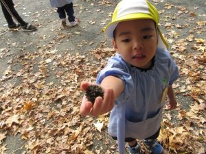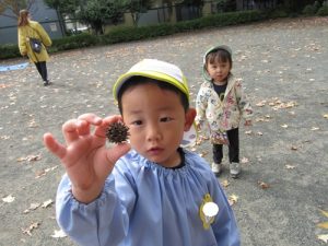 なにみつけたのー?と聞くと、「どんぐり!!」と言っていました![]()