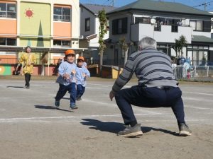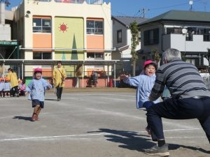 ゴールには園長先生がいて、ギューッとしてもらってゴールです![]()