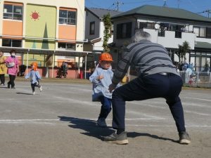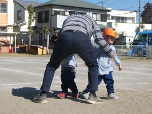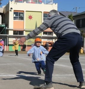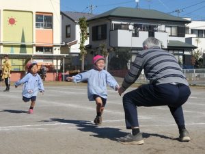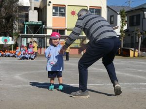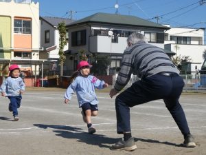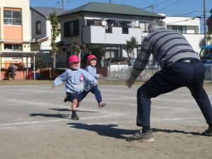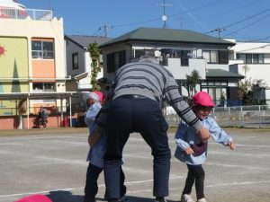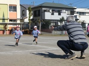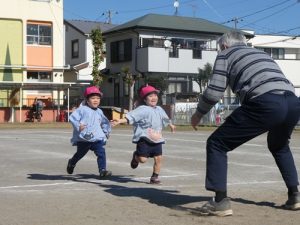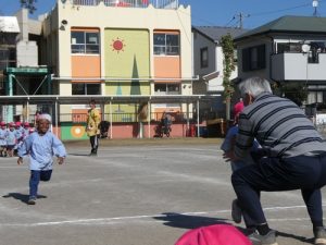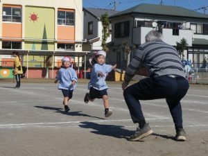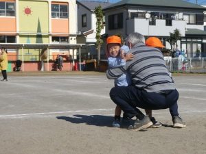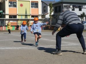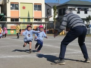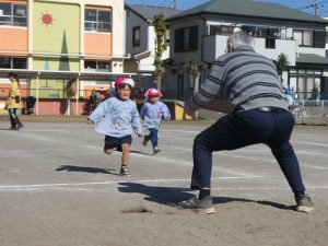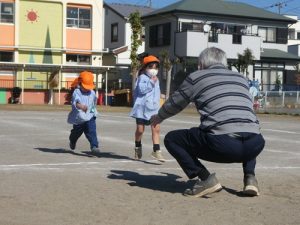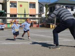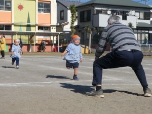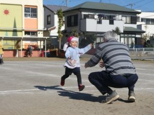 ゴールには園長先生がいて、ギューッとしてもらってゴールです![]()