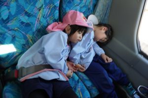 たくさん歩いたので、帰りのバスはぐっすり寝ている子もいましたね![]()