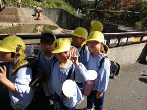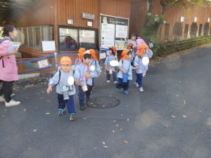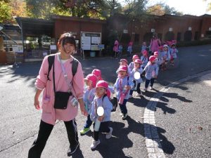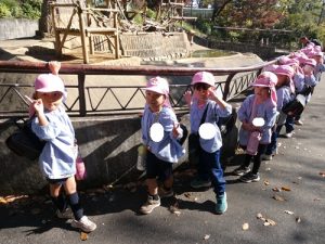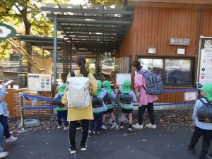 バスから降りたらお友だちと手を繋いで動物園まで歩きました!