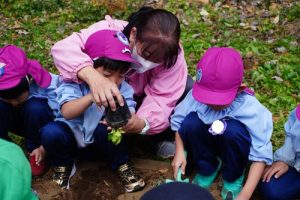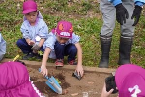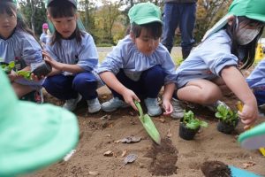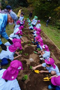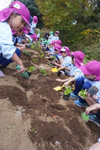 本日は、年長組が幼稚園を代表して、城山公園に菜の花植えに行きました!