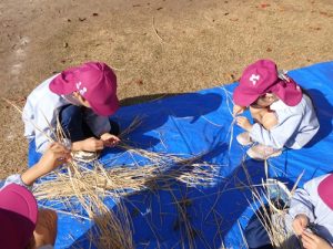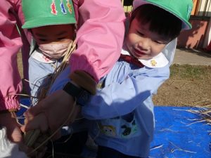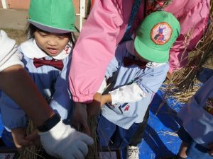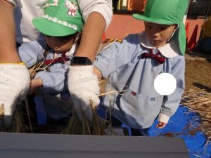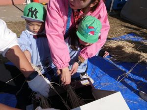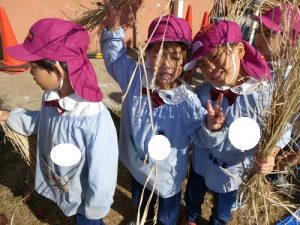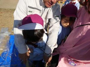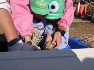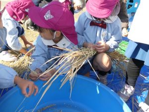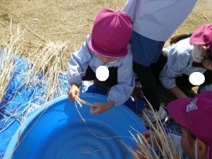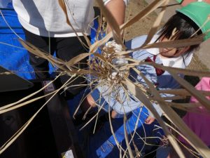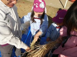 最初脱穀と聞いて「なにそれー?」と言っていましたが、説明を聞くと「お米っぽい!色が違う!」