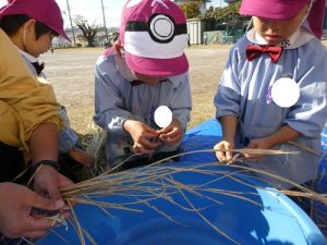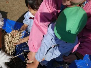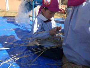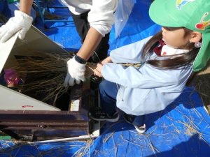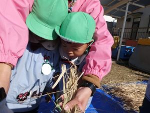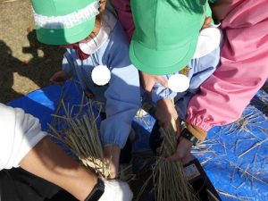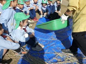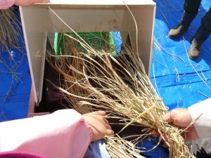 今日はお米作りの『脱穀』いう過程をおこないました
