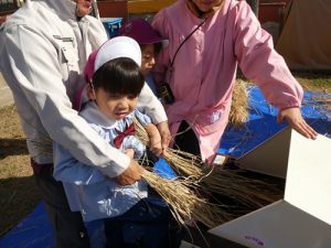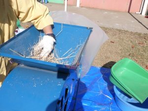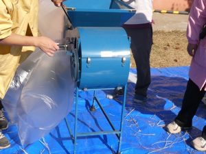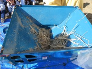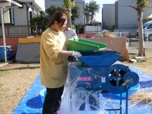 脱穀の後は唐箕(とうみ)を使って籾殻と籾(もみ)を分けました