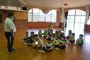 マットの上では、焼き芋になりきってゴロゴロ転がり、マットから落ちないように気を付けて転がります![]()