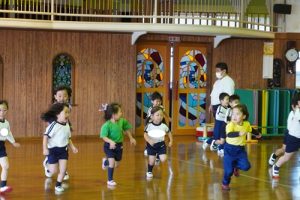 柔軟体操が終わった次は、「よーいどドン!」と走って身体を温めます![]()