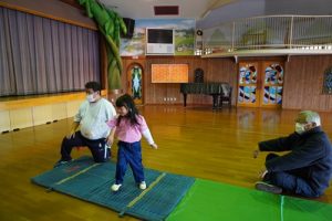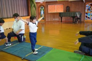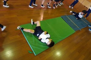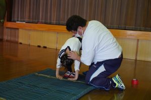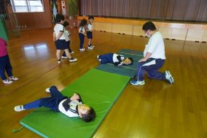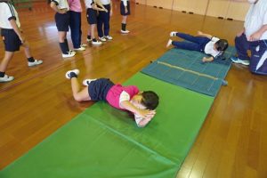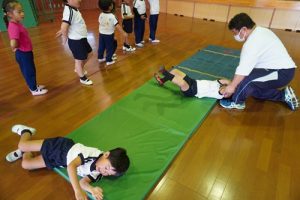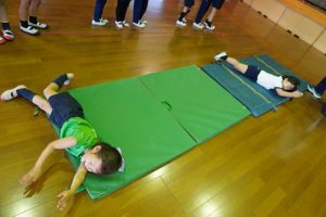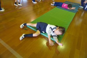 サーキットでの練習を頑張った後、最後に「前転」の練習を行いました。