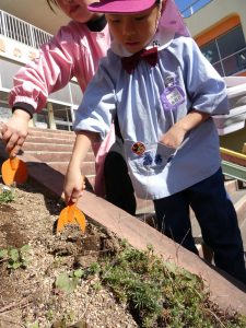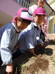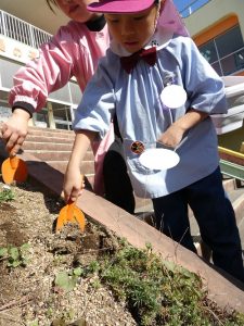 卒園する頃か次に入ってくる小さな子たちが入園してくる時には咲くので