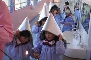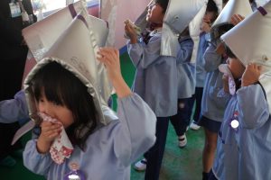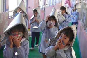 園長先生からのお話では口と鼻のふさぎ方を教えてもらいました。