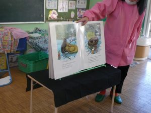最初に「てぶくろ」という大きな絵本を読んでいただきました!!
