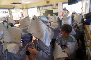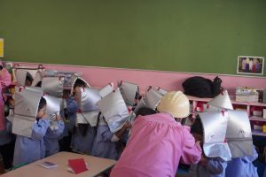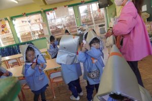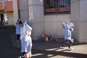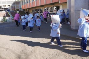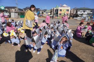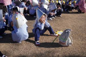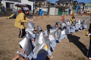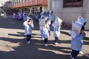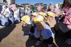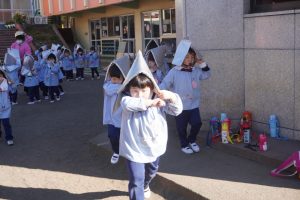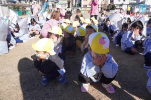 前回、園長先生に教えてもらったハンカチのおさえ方や避難の仕方を意識して行うことができましたね![]()