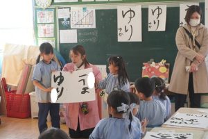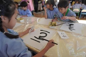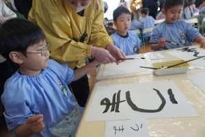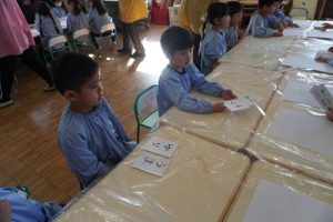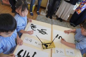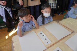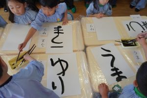 ゆり組ではお正月ということで新年に関連付けて書初めをおこないました![]()