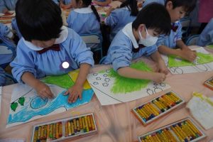 一生懸命塗って手を痛そうにしている子や、細かい所も最後まで頑張っている子がいたりなど色々な姿が見られました![]()