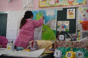 すみれ組は発表会に向けて背景をみんなで作りました![]()