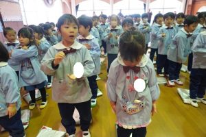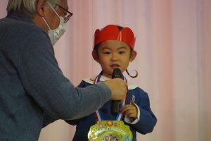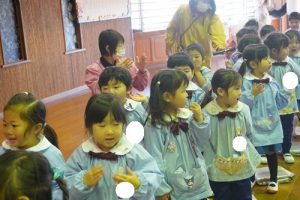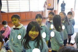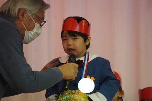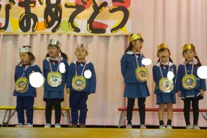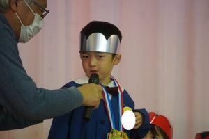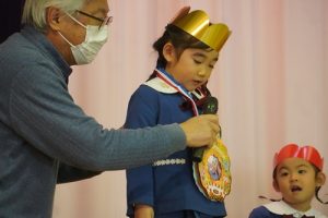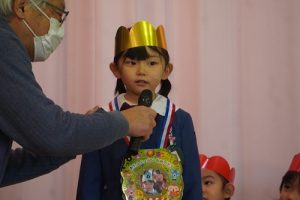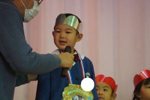 ひとりずつ園長先生からプレゼントをもらいました![]()
