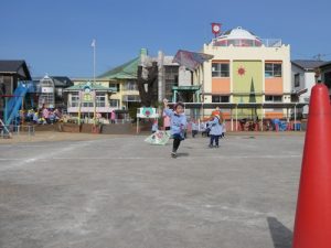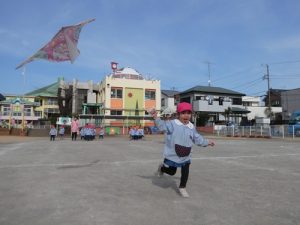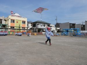 本日は年少組で凧あげを楽しみました