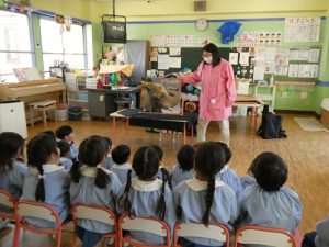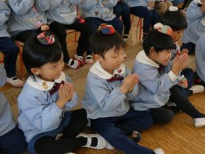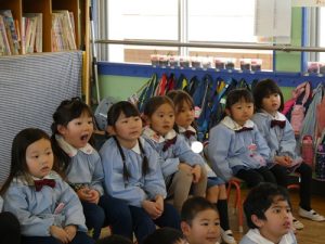 新年のご挨拶をして、早速子どもたちの大好きなお話の時間のスタートです![]()