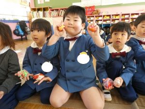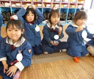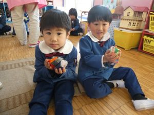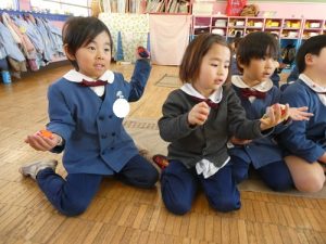最後にお手玉を使って、お正月の手遊びを行いました!