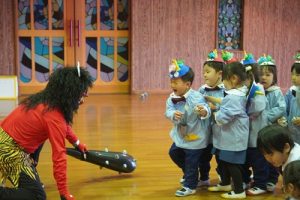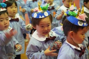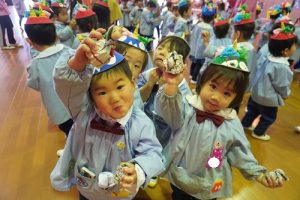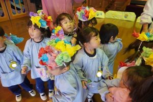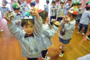 各学年・各クラス、色々な材料を使って事前に素敵なお面を作っていましたね![]()