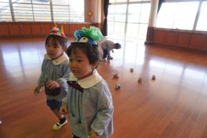 「おにはそと~!ふくはうち~!」と豆まきごっこを楽しむ予定でしたが・・・