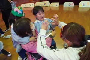 年中さんは「こわいー!」と泣いて先生に抱きつく子も見られましたが、年長さんになると
