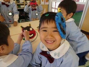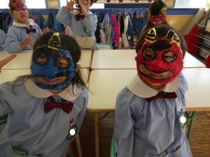 今日は鬼のお面をお持ち帰りしていますので、ご確認お願いします。