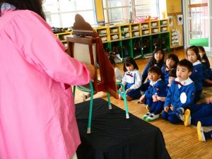 最後にパネルシアターで『まっくろネリノ』というお話を聞かせてくれました![]()