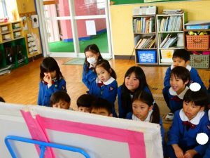 パネルにくっつくのが不思議な子ども達は興味津々で、前のめりになりながら