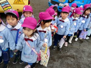 バスに乗って学校へ行くことを知り、大喜びの子どもたち![]()
