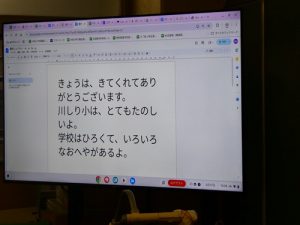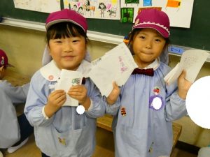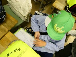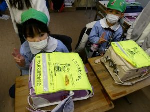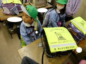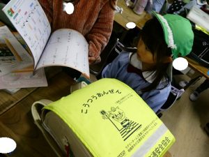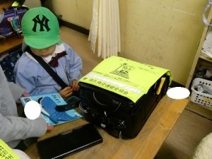 まずは席に座らせてもらい、ランドセルや教科書を見せてくれました![]()