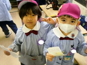 お買い物ごっこを楽しんだ後は「にじ」の歌をうたってくれ、メダルをプレゼントしてくれました![]()